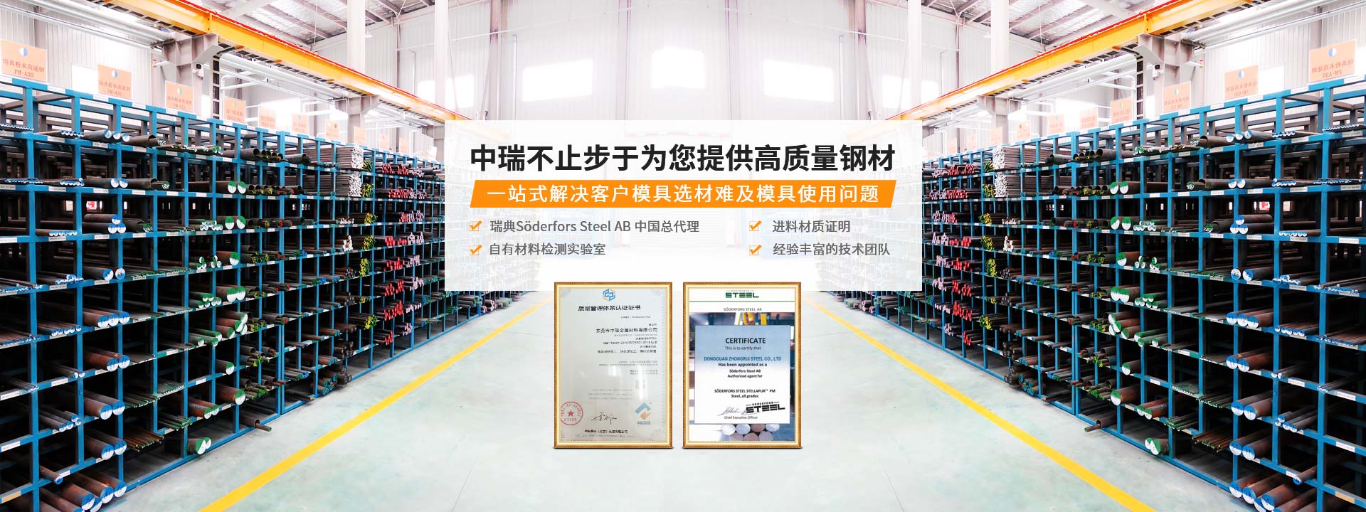 中瑞金屬17年來專注模具鋼的生產加工,主要從事各種進口粉末高速鋼、模具鋼、高速鋼等產品的銷售及配套加工服務,與瑞典S?derfors Steel AB、日立、臺灣榮剛合作,直接進口高品質特鋼;自有研發檢測中心,擁有50多臺進口加工設備和多臺測儀器設備,為材料的質量把關,5大服務據點,為客戶提供本地化的服務;中瑞一直把為客戶提供穩定高質量的鋼材及配套加工服務作為企業的目標,并一直朝著這個方向努力;